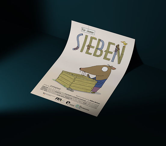The studio's newest film, Für Immer Sieben, needed promotional material created for it for display and marketing purposes. This required creating material that fit the theming of the film without spoiling the main plot elements.